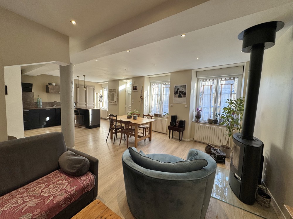 Surface habitable d'environ 101 m². Chauffage par pompe à chaleur (2019).