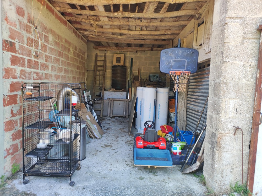 Dépendances attenantes : abris bois, remises, garage ouvert et un autre garage avec grenier au dessus, une étable en pierre et masse en mauvais état.
