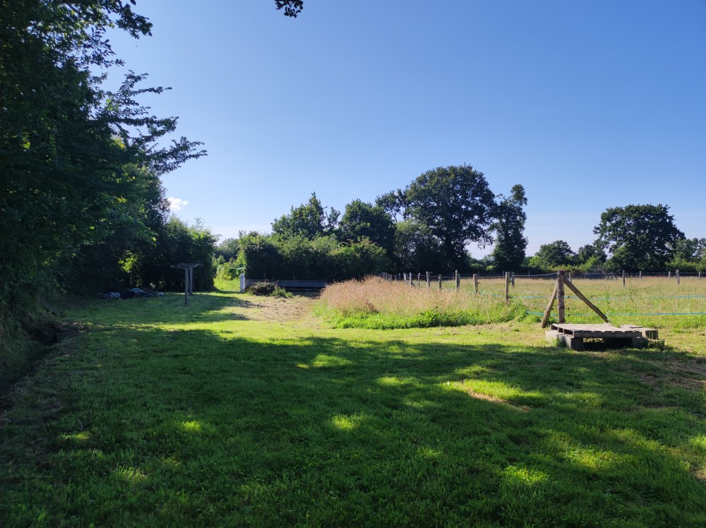 Terrain avec une cour et un chenil sur l’avant, abris en tôles et parc à moutons sur l’arrière.