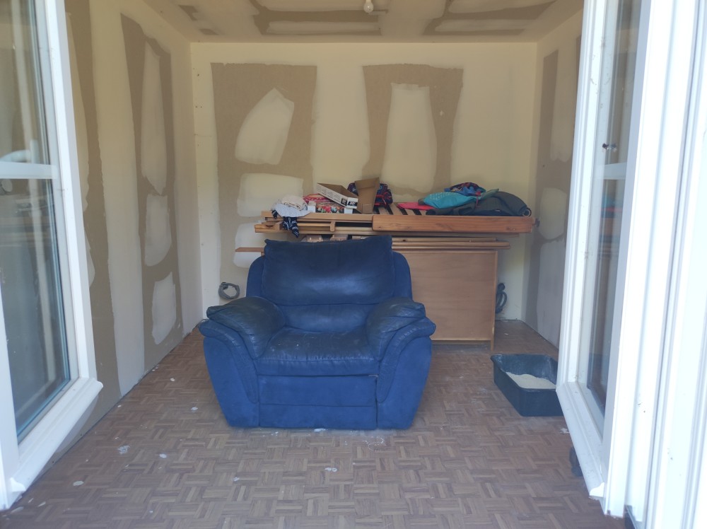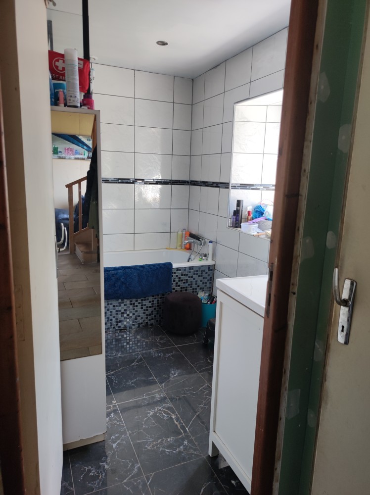 Isolation laine de verre aux plafonds, murs de la salle de bain et du salon en placo.