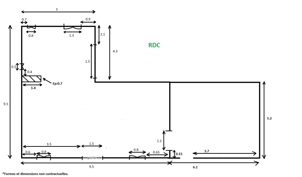 - Au RDC: une grande pièce avec cheminée (d'environ 46 m²), une pièce en extension (d'env. 21 m²) et une autre grande pièce (d'env. 31 m²).