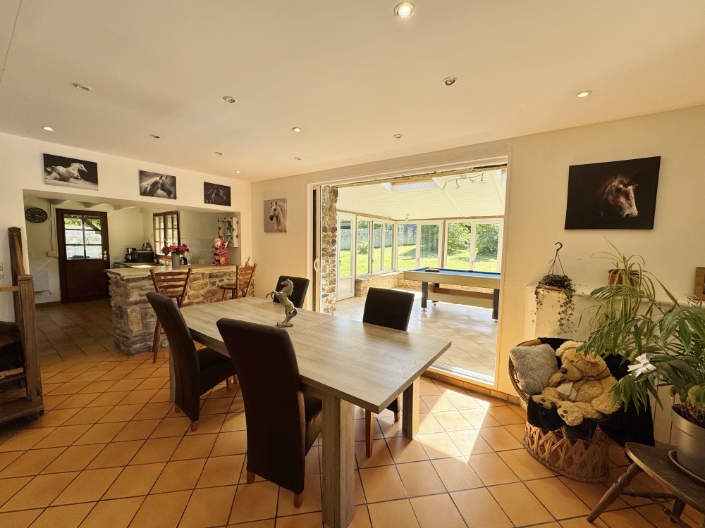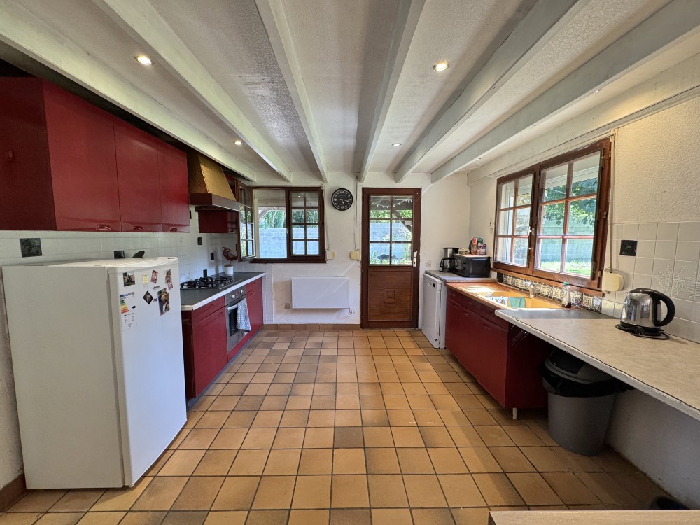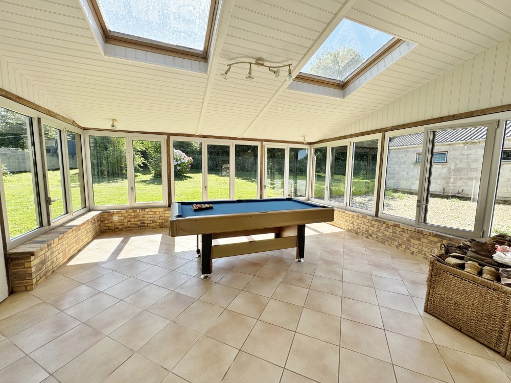 - Au RDC: un séjour/salon avec cheminée (d'environ 40 m²), une véranda (d'env. 23 m²), une cuisine (d'env. 13 m²), un couloir desservant un débarras, une salle d'eau, une chambre (d'env. 19 m²) et une buanderie avec W.C.