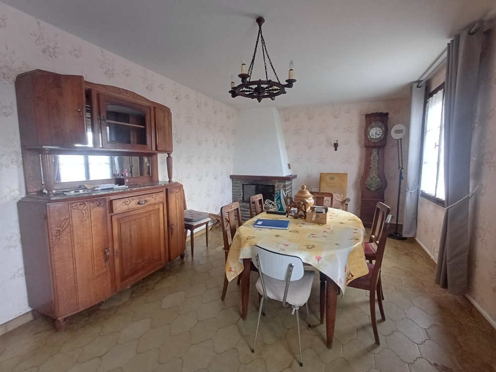 Au rez-de-chaussée : Entrée couloir desservant une cuisine (env 10,5m²) , un séjour avec cheminée insert (env 23m²), trois chambres (env 9,5, 10 et 12,5 m²), une salle de bains (env 4m²) et un WC.