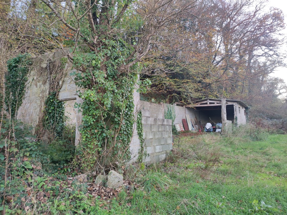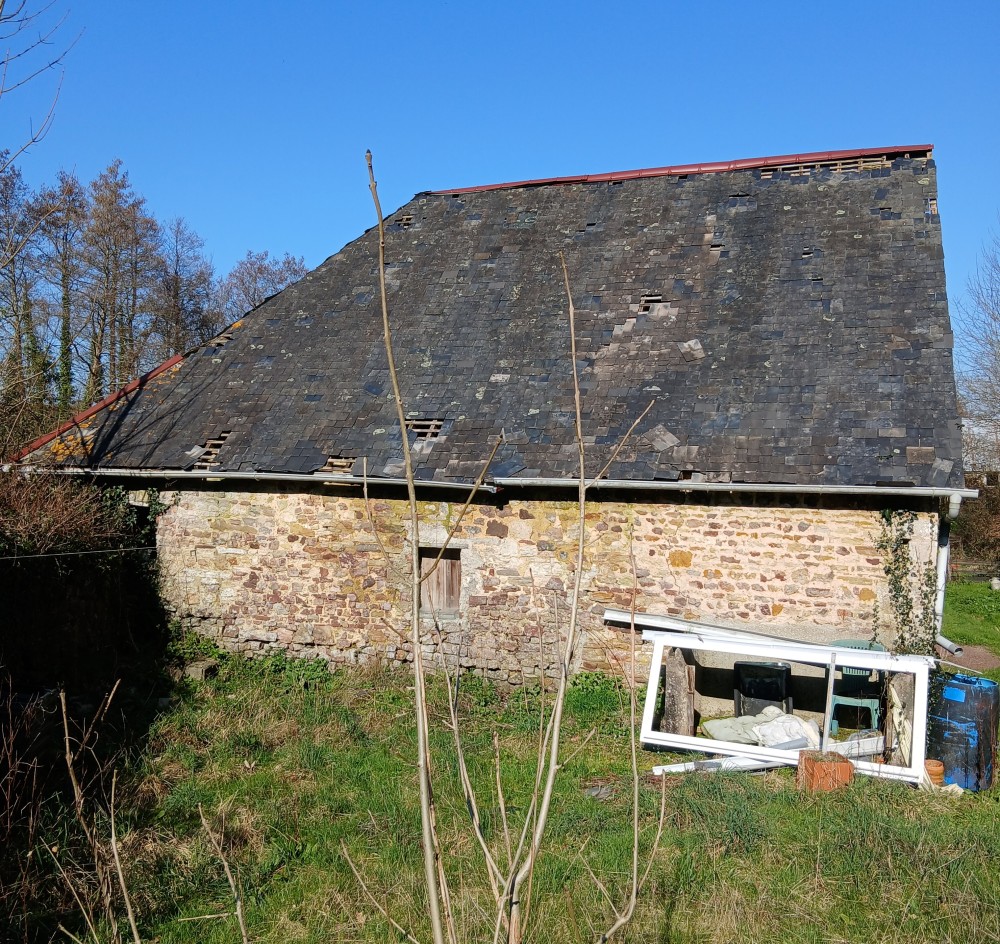 Adjoining is a workshop. Opposite is a stone outbuilding with a roof that needs repair.