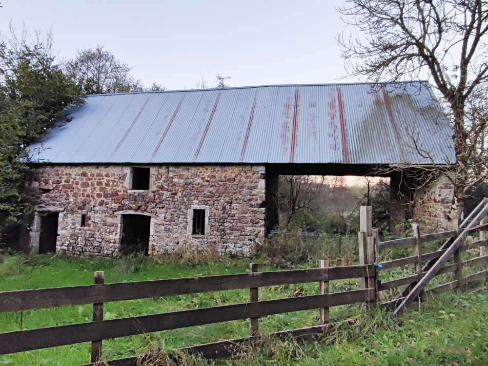- Across the road is a stone barn with a corrugated iron roof and pastureland (8,760 m²).